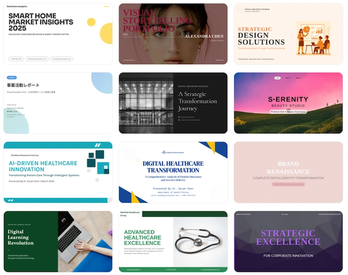 Genspark AI generates consulting-style decks with deep research, structured frameworks, and data synthesis, ideal for data-heavy proposals and board presentations.