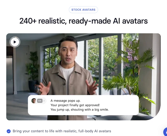 HeyGen lets you create a realistic AI avatar to generate professional video content in 40+ languages without a camera.